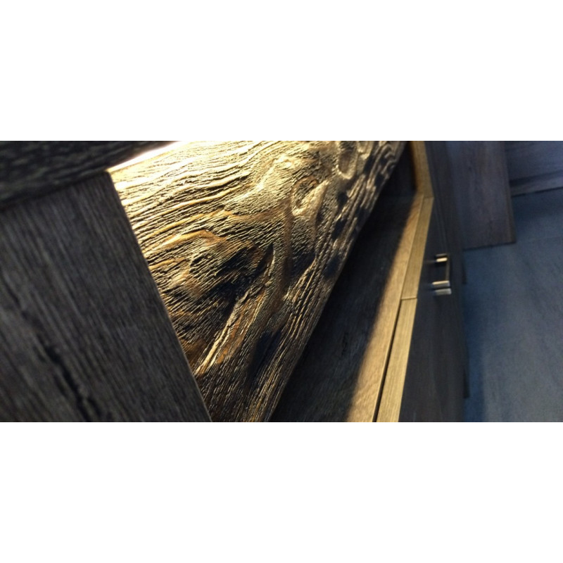 Meble systemu Indiana wykonane są z płyty laminowanej gr.16mm, blaty pogrubiane 48mm. meble wykończone obrzeżem PCV ABS. Pod blatami znajduje się element wykonany z litego drewna z możliwością podświetlenia podblatowego oświetleniem LED.